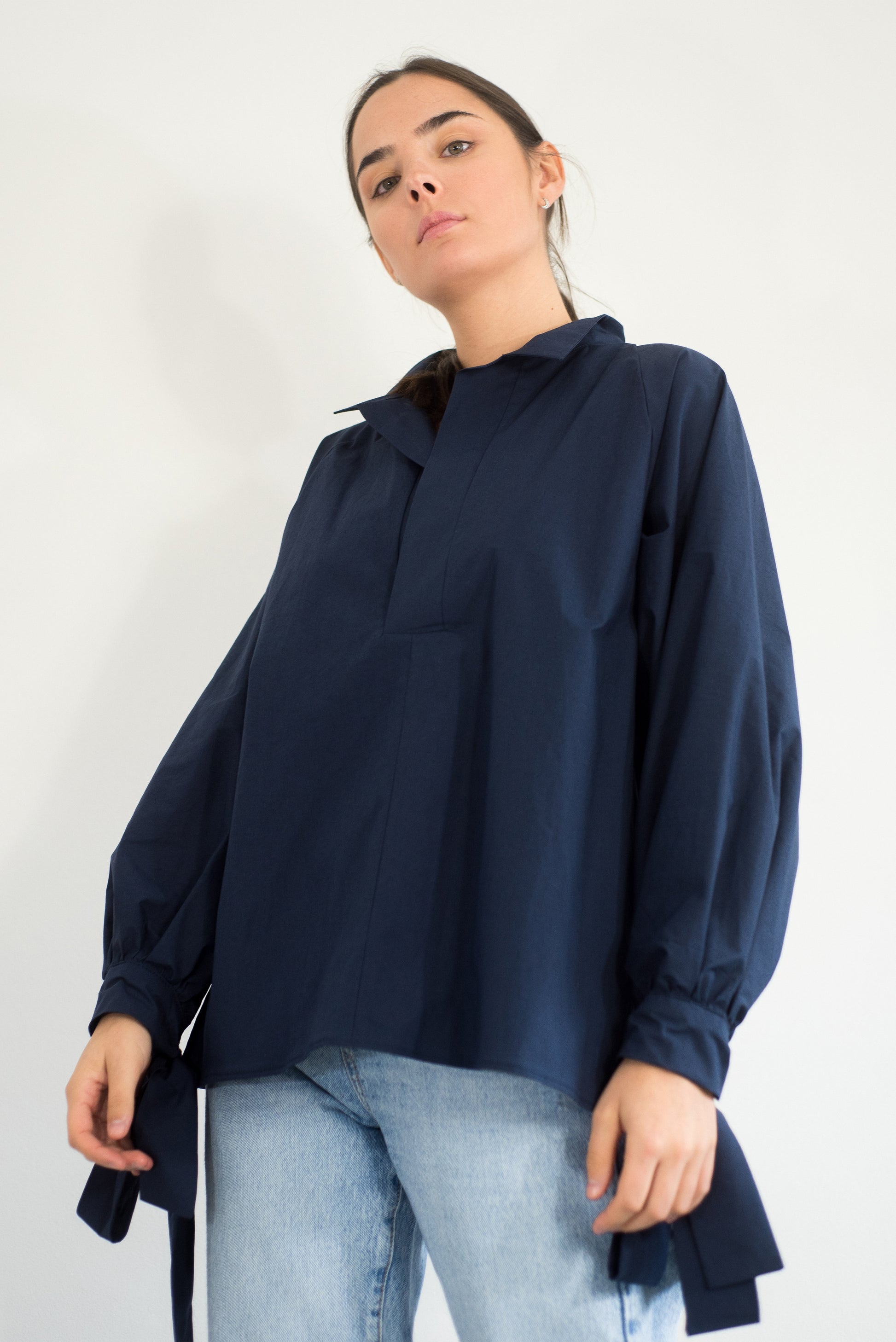 • Manches amples avec nœuds aux poignets